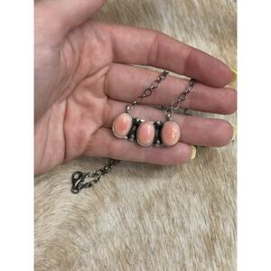 Native American SW Sterling Silver Triple Stone Pink Conch BARRR💕Necklace by ELI SKEETS