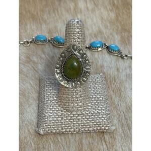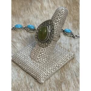 Native American SW Sterling Silver emerald valley Turquoise Ring Adj💚Stamped