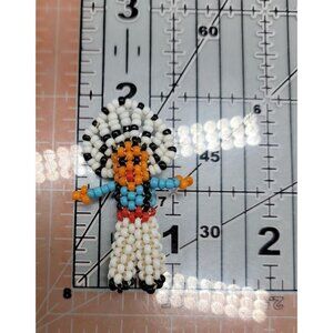 This vintage Native American sead bead pendant charm showcases intricate craftsmanship with its handmade Indian Chief design. Perfect for adding a touch of ethnic flair to any outfit.