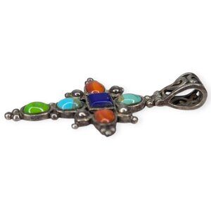 Native American Sensa Eustace Zuni 925 Silver Multi Gem Stone Cross Pendant 2"