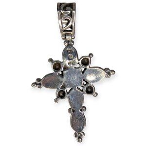 EUC Native American Sensa Eustace signed 925 silver multi gem stone cross pendant.