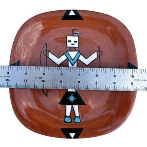 Native American Signed T. Hughes Ceramic Plate W/ Kachina Design 7 3/8" Dia.