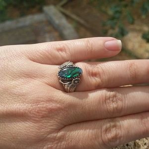 Native American Silver Abalone Squash Blossom Ring