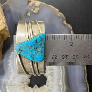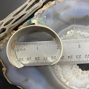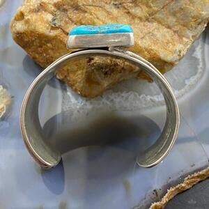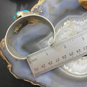 Signed Native American Silver Chunky Turquoise Decoration Solid Bracelet For Women.