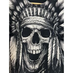 Native American Skull Indian Chief All Over Print T Shirt Black Size Large