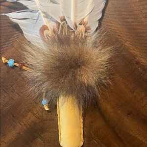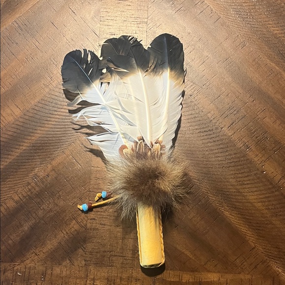 Vintage Native American smudging/ prayer fan. Has 3 kinds of feathers and a suede leather handle.