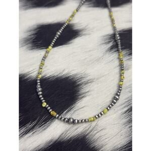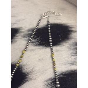 🌵Native American Sterling Silver Palomino Turquoise 💚Navajo Pearl Necklace