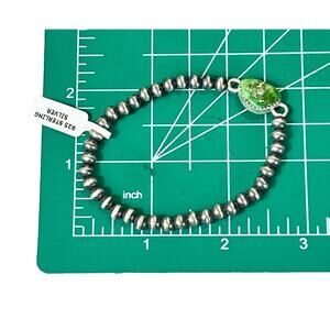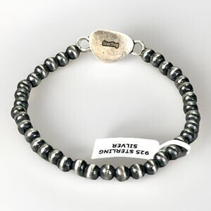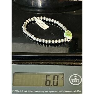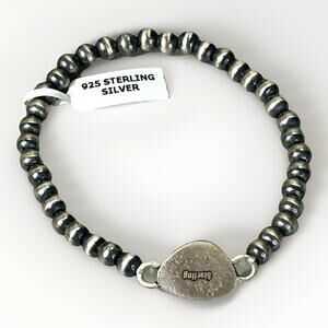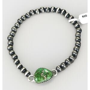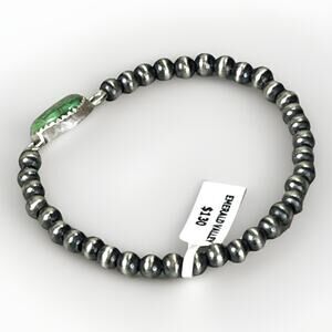 • Design: Handcrafted Navajo-style stretch bracelet with alternating oxidized sterling silver beads and a central Emerald Valley Turquoise focal stone