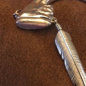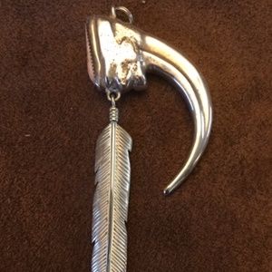 Native American Sterling Silver & Queen Pink stone Eagle Claw & Feather pendant