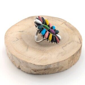 Native American Sterling Silver Rainbow Multi-Stone Cluster Ring Sz 7 US **