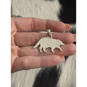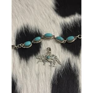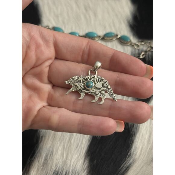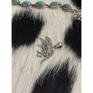 Native American Sterling Silver Turquoise Spiny Armadillo Picto Story Pendant