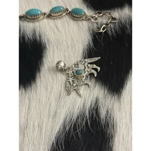 Native American Sterling Silver &🩵🧡Turquoise Spiny Armadillo Picto Storyteller Pendant