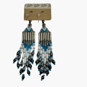 Native American Style Earrings Blue White Hook Drop Dangle USA