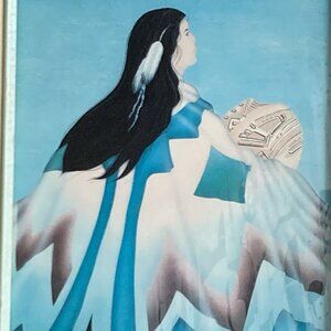 Native American Theme Wall Art Woman Framed Picture Signed Diana Martin