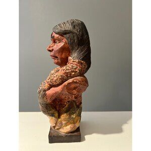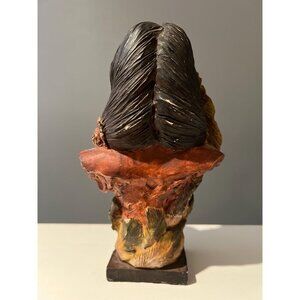 Native American Tribal Warrior Ceramic Bust – 9” Hand-Painted Folk Art Statue