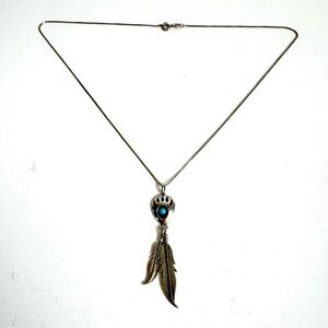 Native American Turquoise Necklace Running Bear Paw Claw Feather Sterling Silver