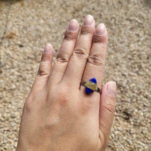 Native American Vintage Lapis and Mother of Pearl Inlay Ring Handmade Jewelry