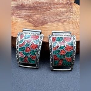 Crushed green turquoise and coral inlay