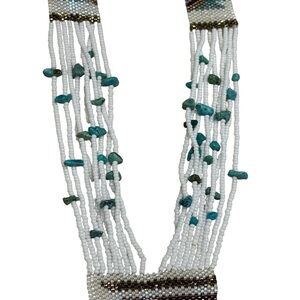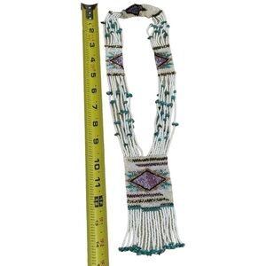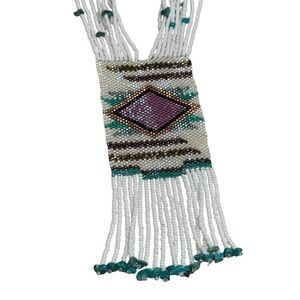 Native American White Turquoise and Purple Beaded Long Dangle Necklace