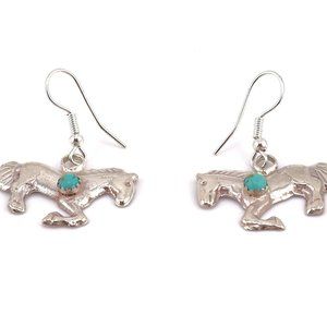 Native American Women's Blue Turquoise Horse Earrings Navajo Jewelry***