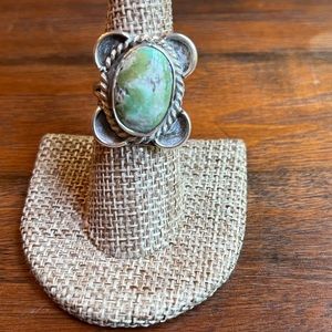 Handmade Native American green turquoise ring - fabulous design! Ring size 6.75 ❤️