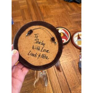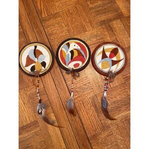 Native American signed by artist hand painted drum wall hangings set of 3