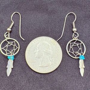 Celebrate the spirit of Native American artistry with these stunning sterling silver mini dreamcatcher earrings, meticulously designed to blend tradition with modern elegance. Each delicate piece captures the intricate web of a dreamcatcher, embodying the protective charm while offering a lightweight and versatile accessory that effortlessly transitions from day to night. Perfect for collectors and enthusiasts alike, these earrings not only elevate your style but also tell a story of culture and resilience, making them a treasured addition to any jewelry collection. Purchased on the Santa Fe Plaza in NM. Early 1990’s