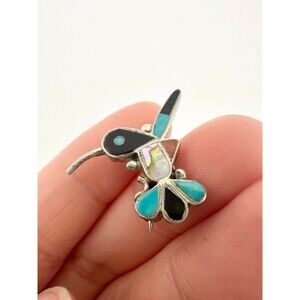 Native American sterling silver turquoise abalone hummingbird pendant pin