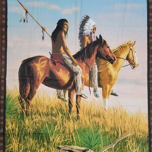 Native American-Themed Fabric Panel Jim Hautman Art By Cranston 35" X 44" Cotton