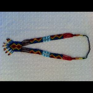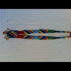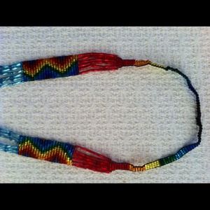 San Juan Chamula Mexico beaded necklace 14" long. Pendant 1/2" wide. No clasp--slip on.