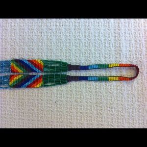 San Juan Chamula Mexico beaded necklace 14" long. Pendant 1/2" wide. Slip on--no clasp.