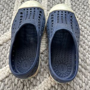 Native Blue and White Water Shoes with Slip-on Design and Rubber Sole