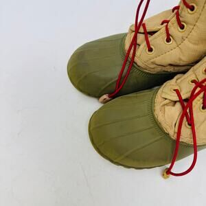 Native Boys Duck Boots Size J1 Tan Green Rubber Waterproof Winter Snow Boots