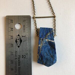 This is a solid piece of lapis lazuli stone pendant, plus a piece of brass tubing, and set on a long chain.