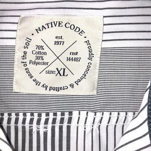 Native Code Long Sleeve Shirt Mens XL Grey Button Down Striped Collared
