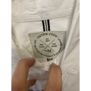 Native Code Men's White Button-Up Shirt Blue Stripes Long Sleeve Casual Medium