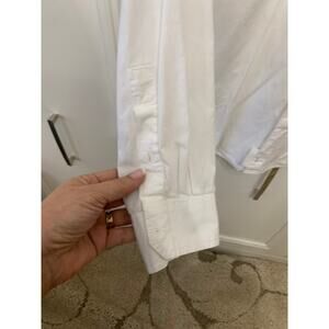 Keywords: men's white shirt, medium size, long sleeve shirt, cotton fabric, striped pattern, button-up shirt, collared shirt, casual wear, breathable shirt, comfortable fit, machine washable, all seasons shirt, pre-owned men's clothing, unbranded shirt, regular fit.