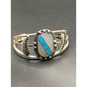 Native Cuff bracelet Mother of Pearl and Turquoise sterling silver bracelet