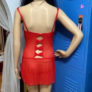 Vibrant very sheer mesh red one piece lingerie