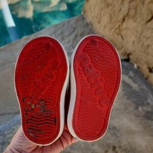 Native Jefferson Red Kids Slip-On Shoes Size 4. Good pre-owned condition. Smoke free pet friendly home. Comfortable and stylish red slip-on shoes for kids. Perfect for everyday wear. Size 4 red slip on shoes Native Jefferson