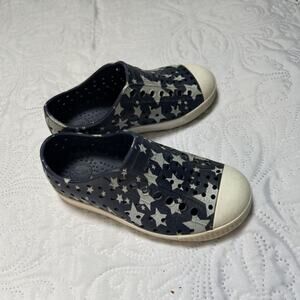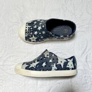 Native Jefferson slip on water friendly sneakers in patriotic navy Star print. Play condition for overall wear to shoes. Size 9 little kid / toddler.
