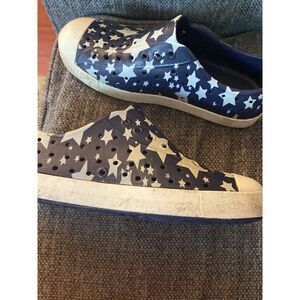 Native Jefferson shoes kids Junior 3 in good pre owned condition normal wear and tear dirty around the white trim of the shoes. See pictures for more details. And dirty on the back of the heels