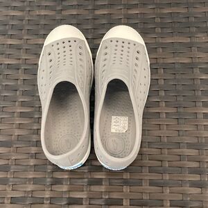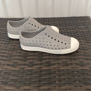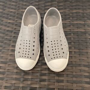 Native Jefferson shoes junior size 1 the color is gray in good preowned condition. Normal wear and tear. See pictures for more details. A little dirty on the bottom of the shoes overall in great shape.