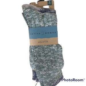 GOLDTOE Men's Native Nomad Crew Slub Socks 2pk In Marbled Navy & Green, 6-12.5