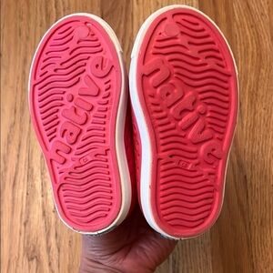 Step into comfort and style with these Native water/outdoor shoes, featuring a vibrant pink and white color scheme.