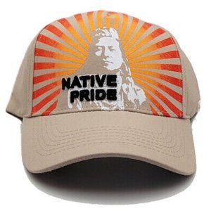 Brand New 100% Cotton Black Eagle Native Pride Chief Burst Strapback Hat. Native Pride Chief on a Red Burst Panel of a Beige Crown. One Size Fits Most. Native Pride Strapback hats like these usually retail for $27 plus shipping, but you can take advantage of this one for only $16 with free domestic priority mail shipping!!! Hat has all logos and letters on crown embroidered, stitched on.