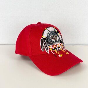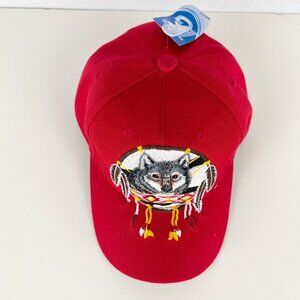 Native Pride Men's Red Cap One Size Embroidered Wolf Dreamcatcher NWT