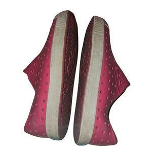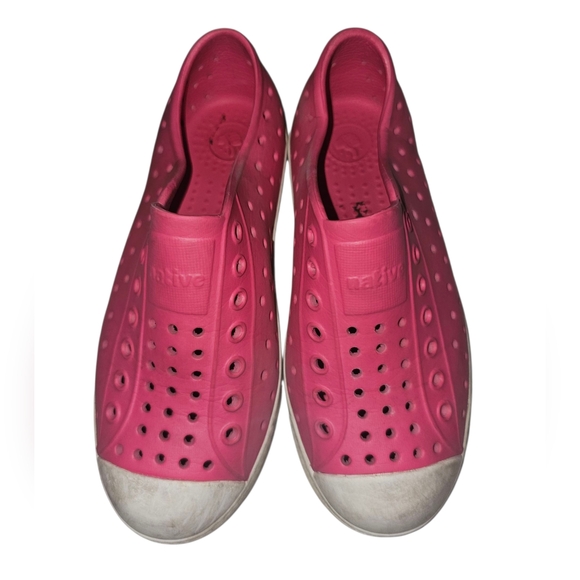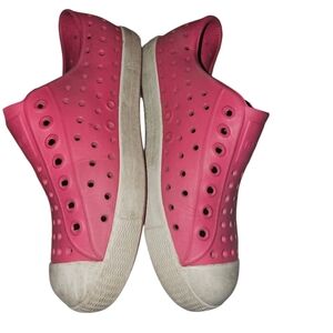 Experience comfort with Native's pink perforated slip-ons. Ideal for everyday wear.