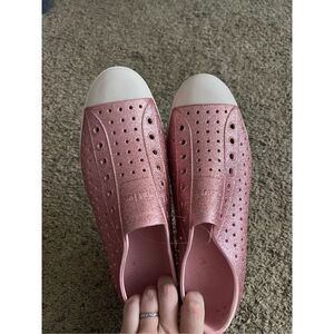 Native brand shoes. Pink sparkly. Size on the bottom is m11 so men’s 11. Very nice condition.