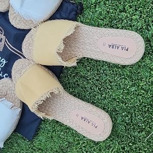 NWOT. Each pair of slippers comes with a dust bag. Made of fabric and abaca material.